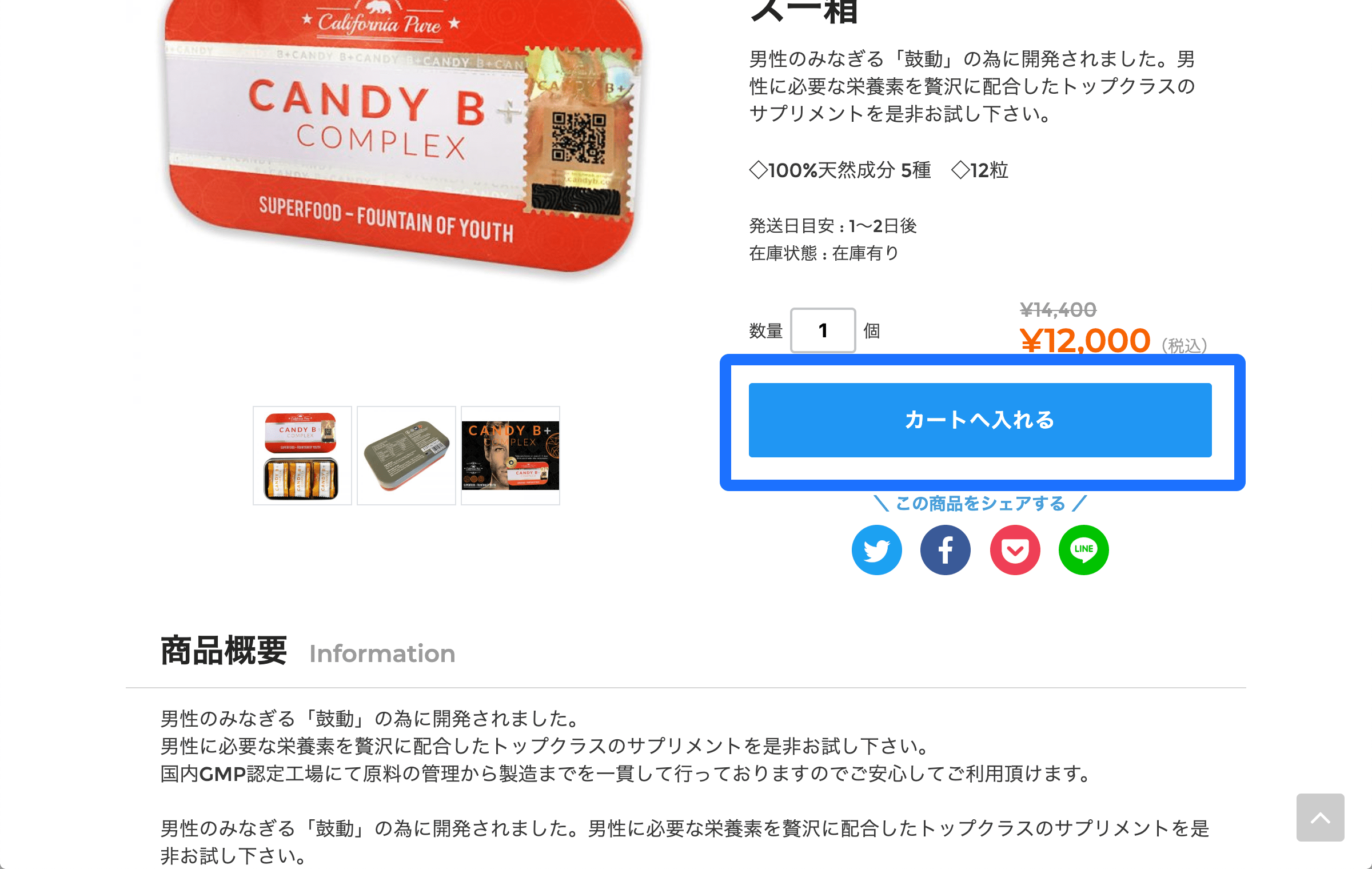 STEP.2CANDY B をカートに入れる詳細ページにある『カートに入れる』ボタンをクリックし、カートに追加してください。